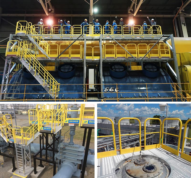 C H Bull Co. company has been a solution, turnkey provider of many products over the years. One of the major advantages of ErectaStep is it is a modular bolt together product. Being a modular system, components can be brought to a roof or a location piece by piece for installation. Many times, the competitors’ products are welded and need to be craned into position. With ErectaStep there is no welding and not need for a hot permit and fire watch during installation. With the extensive instructions and the simple nature of the bolt together system, some customers will do their own installation while others would prefer it be assembled and installed by our installation teams. We are happy to work with you, our customers, either way.